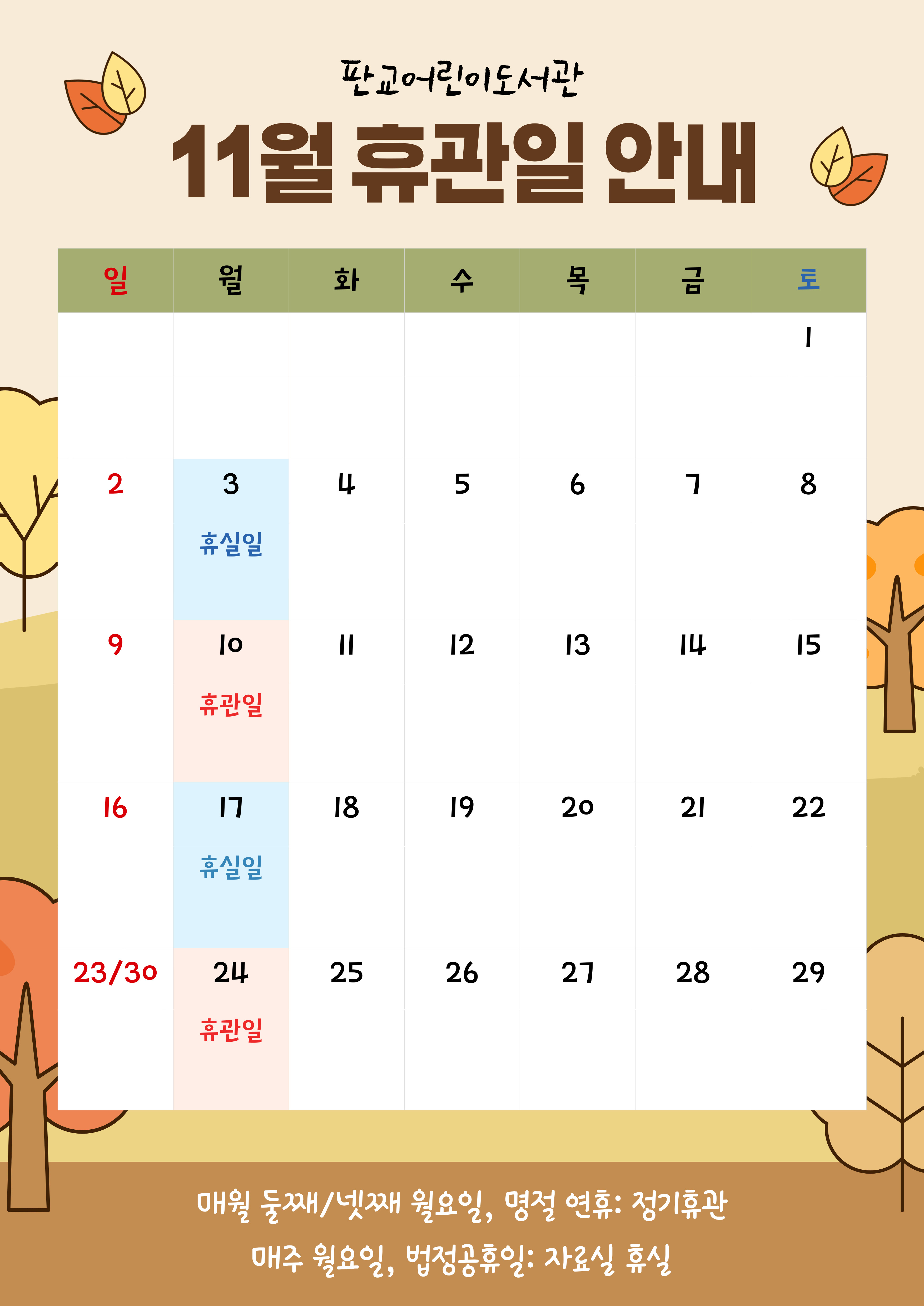 ※판교어린이도서관 2025년 11월 휴관일 안내※