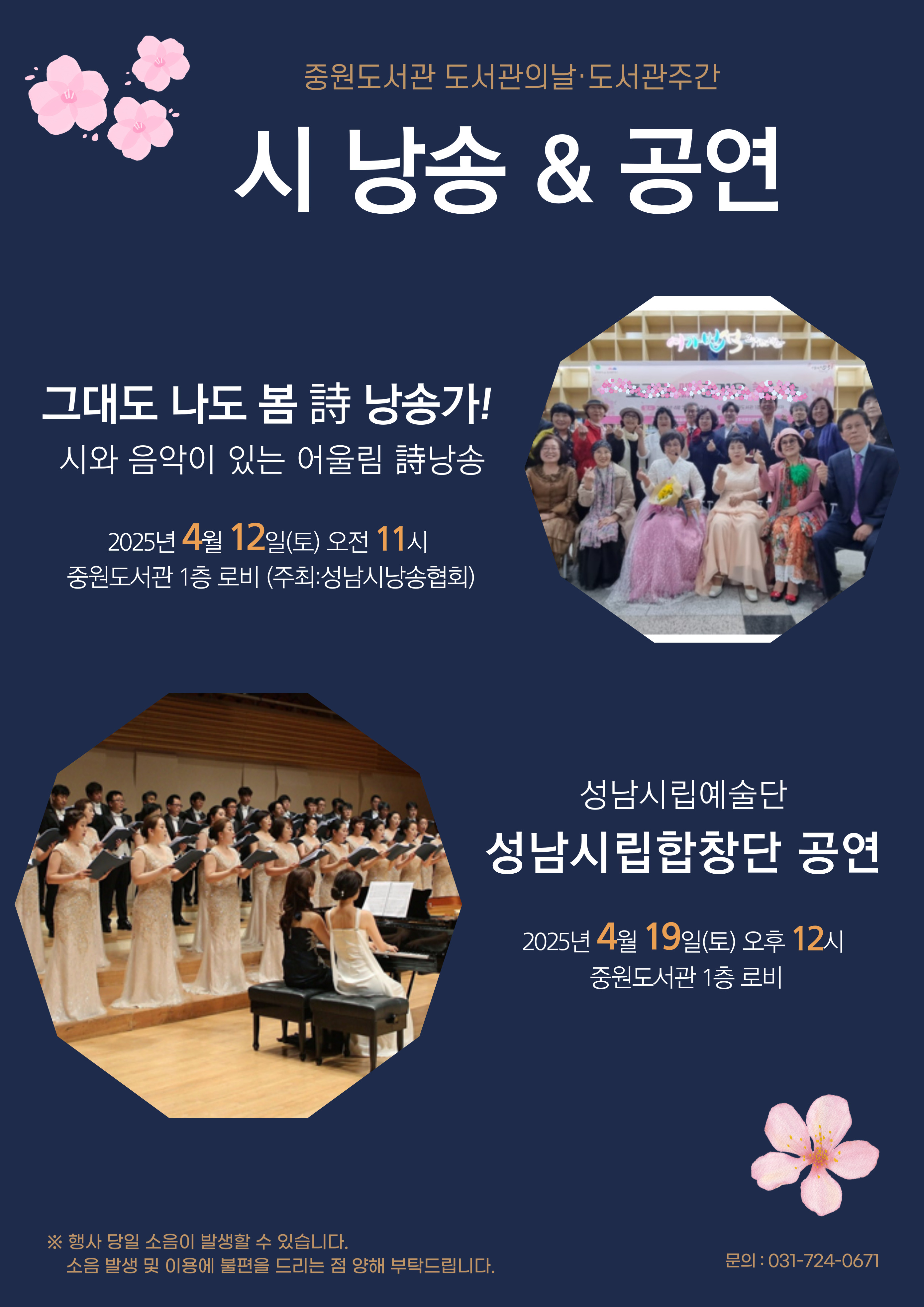 중원도서관 도서관의 날·도서관주간 행사 (시낭송&공연) 안내