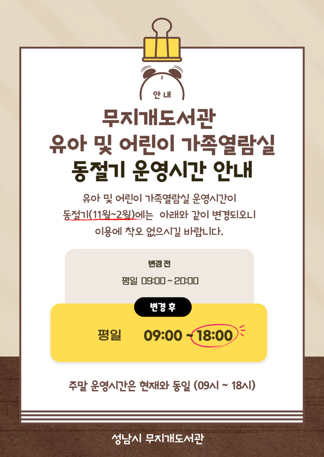 [무지개도서관 동절기 운영시간 안내]