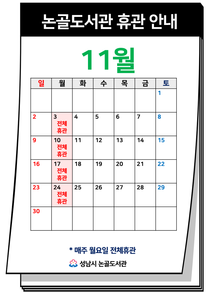 2025년 11월 논골도서관 휴관안내