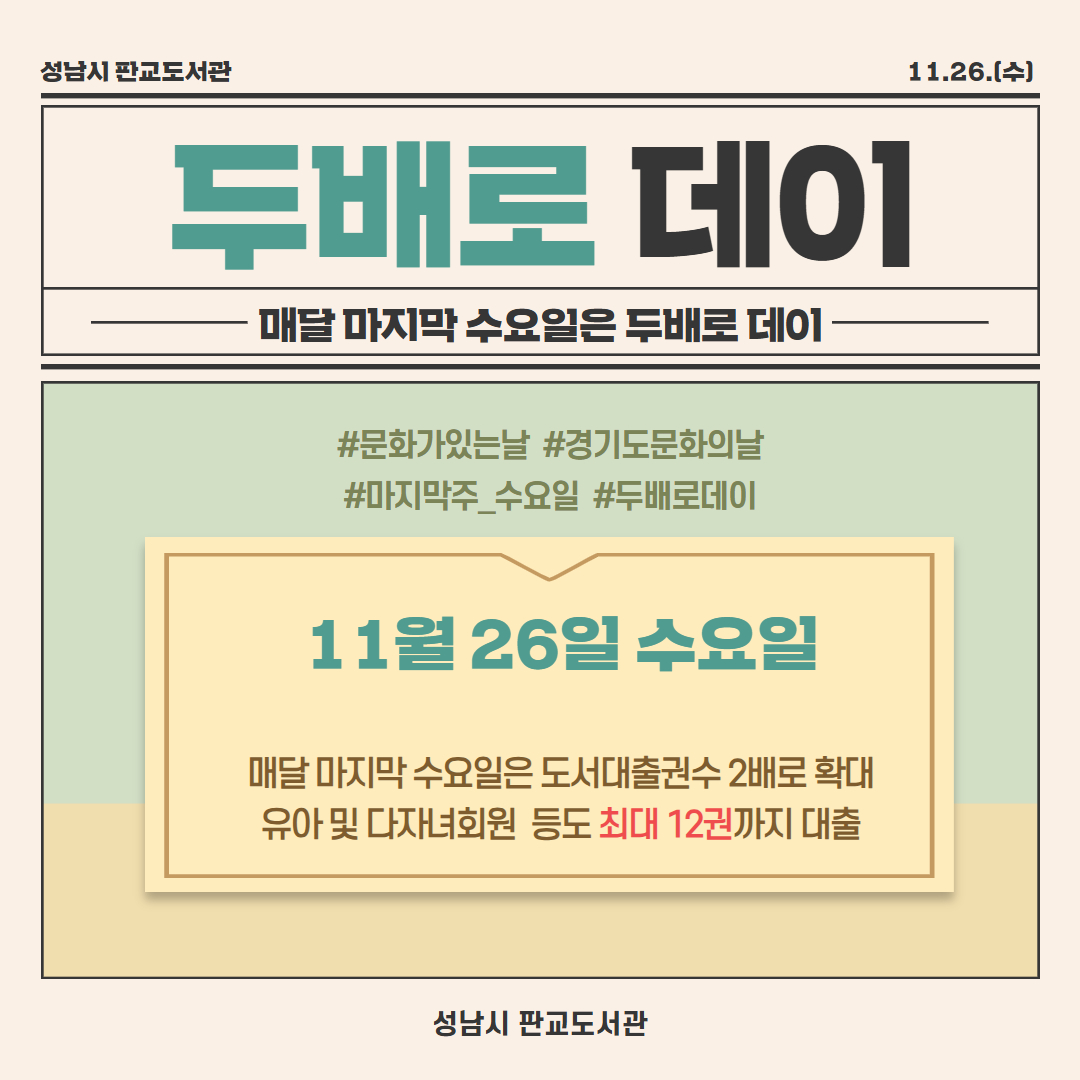 2025년 11월 [문화가 있는날, 경기도 문화의 날] 두배로 데이 안내
