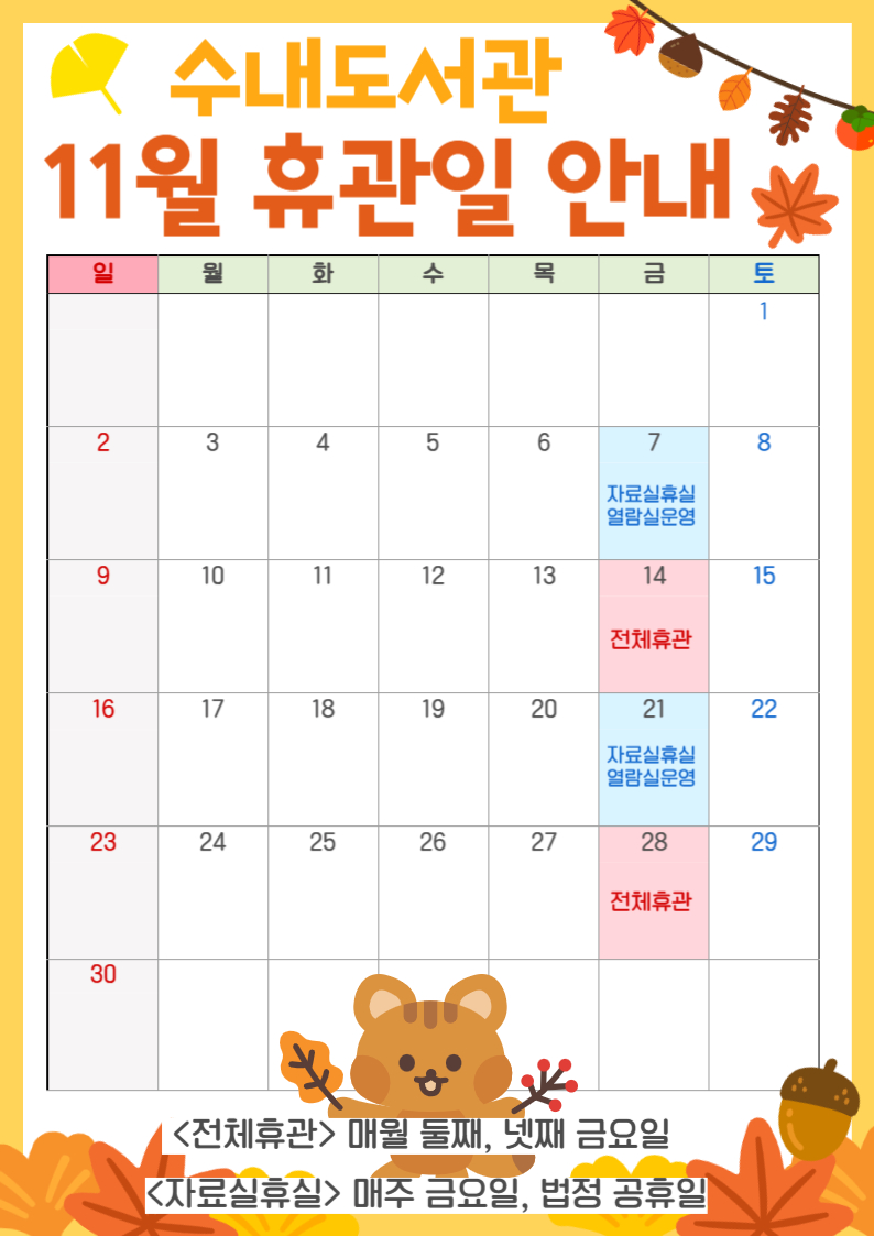 - 자료실 휴실 : 매주 금요일, 법정 공휴일